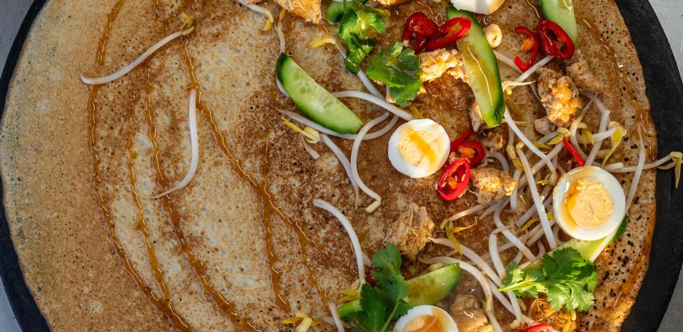 😋Imagine: Our savoury Crepe filled with coconut poached chicken breast, bean sprouts, coriander, peanuts, fried onion, Buzz's secret Laksa sauce and as little or as much🔥as you like.
