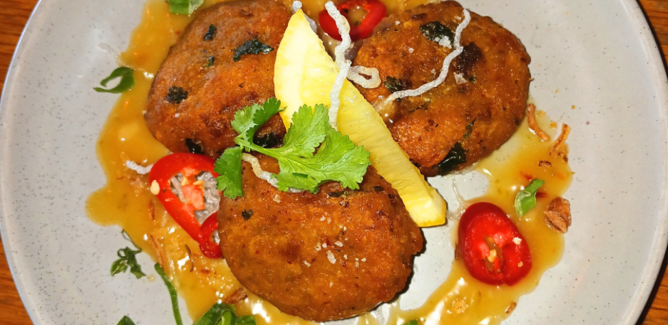 Humpty Doo Barramundi, potato, coconut & lime caramel, chilli, fried noodles, ginger & lemongrass salt