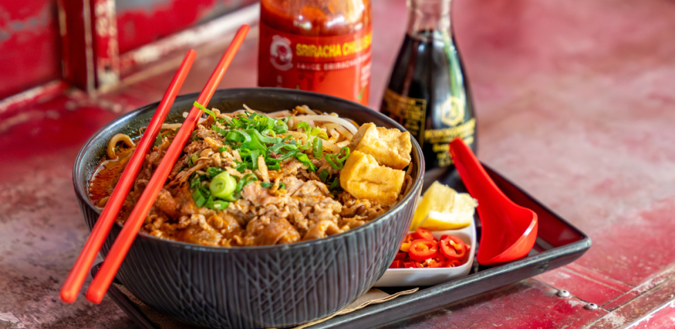 Chicken, seafood, vegetable, vegan, duck, beef brisket & rare beef or chicken and prawn to be served with our award-winning curry laksa broth, rice noodle, egg noodle, tofu puffs, bean sprouts, spring onion and fried shallots.