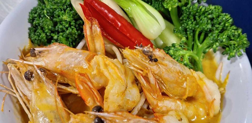 Fresh prawn with creamy coconut broth with hint of Thai chili jam. Serve with rice noodle bok choi ,bean sprout ,carrot , broccolini.