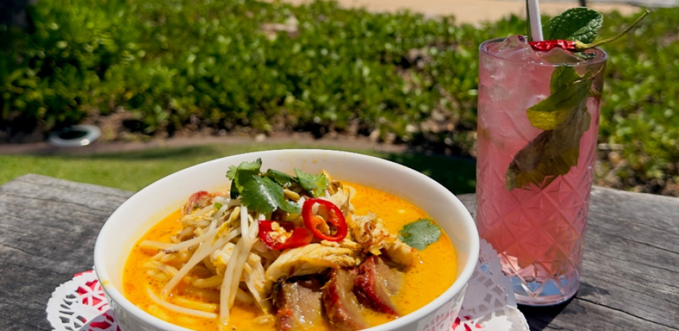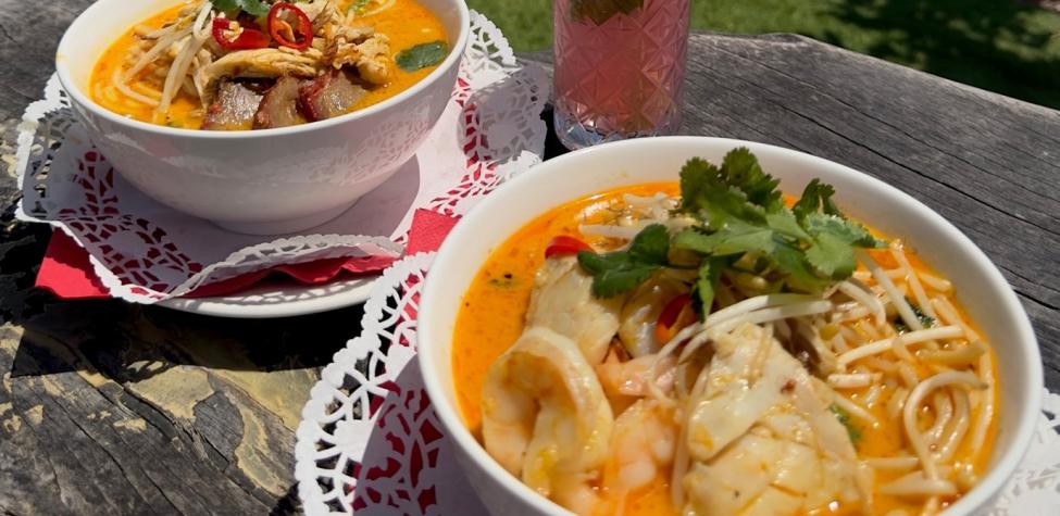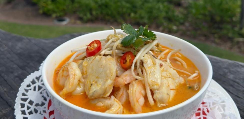 Malaysian-style laksa with Seafood or a combo of Chicken & BBQ pork accompanied by locally made egg noodles, rice vermicelli, bean shoots, chili, coriander, fried shallots and house-made broth. Vegetarian & Gluten Free available upon request
