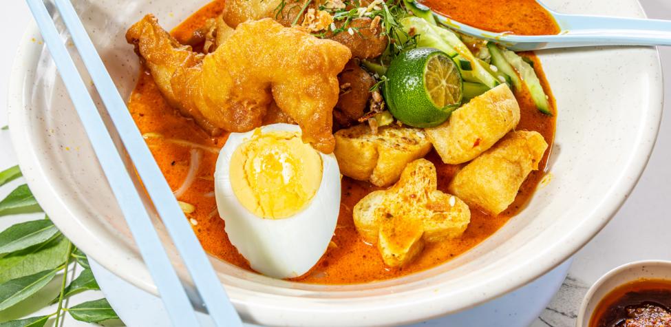 This year we are showcasing yet another different style of Laksa - Nyonya Laksa. Singapore/Malacca style. It is more LEMAK (coconutty) than our normal Laksa, and has no curry powder. Whilst the broth looks no different to other laksa, you have to taste it yourself . This laksa paste is made with lots of fresh ingredients, served with thick rice noodles and a special Nyonya sambal.