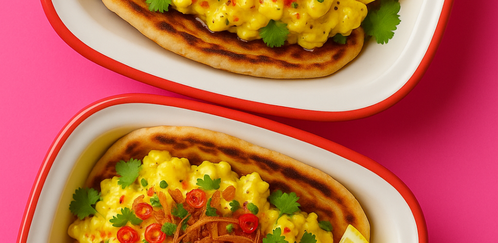 Flaky, fire-kissed roti piled high with soft, golden smashed eggs folded through a rich laksa curd. Finished with chilli oil, fresh coriander, red chilli, crispy fried shallots, and a squeeze of lemon. Creamy, spicy, crunchy, and bright — laksa in breakfast form.