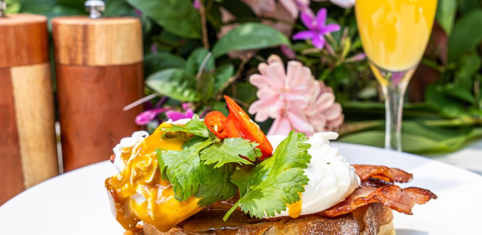 A bold reinvention of a breakfast favourite - soft poached eggs atop toasted sourdough, paired with bacon and finished with a silky coconut laksa hollandaise. Infused with the signature spices and aromas of Darwin’s iconic laksa, this dish blends comfort and creativity into one unforgettable bite.